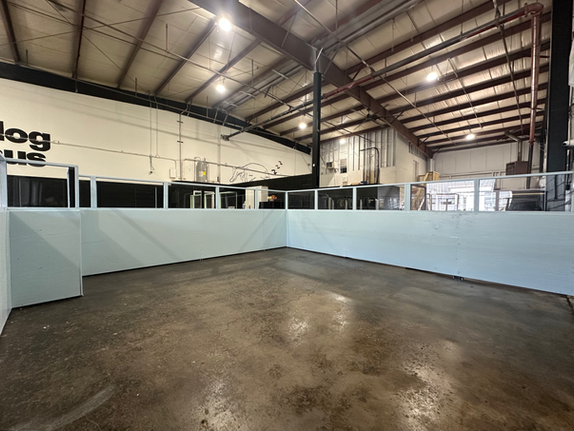 our facility is about 6,000 square feet of warehouse complete with AC and heat. we have an outdoor space coming in the spring (we can't wait!) we have about 2,500 square feet out parking lot that us also used for community events.